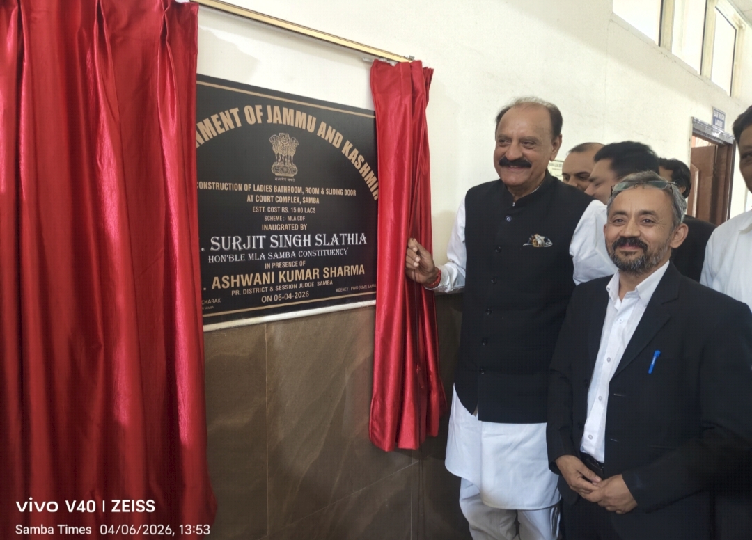 Samba, April 6: MLA Samba Surjit Singh Slathia inaugurated the upgraded Bar Hall at the District Court Complex Samba. The upgraded facility includes a modern pantry, office space, and separate washrooms for ladies and gents for the convenience of advocates and visitors.The inauguration ceremony was convened in the August Presence of Hon’ble Principal District and Sessions Judge Samba Sh Ashwani Kumar Sharma, Additional District Judge Sh. Arvind Sharma, Chief Judicial Magistrate Samba, Secretary DLSA, Add Special Mobile Magistrate, Munsiff, Additional Munsiff, and Munsiff Samba, Advocates /members of the Bar Association Samba