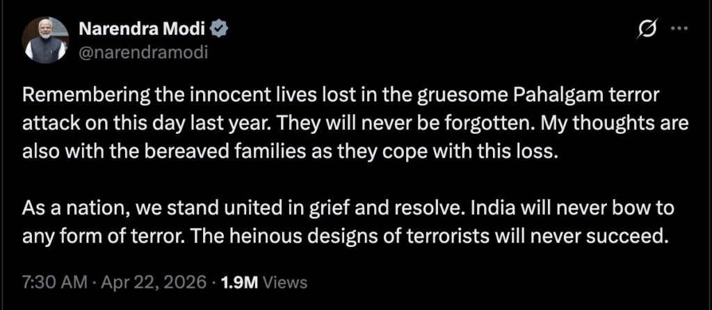 As Narendra Modi rightly expressed, the nation stands united in grief and remembrance. His words echo the sentiments of millions of Indians who continue to mourn the loss while standing firmly against terrorism. The pain of the bereaved families cannot be measured, but the solidarity of an entire nation offers strength and support in their darkest hours.