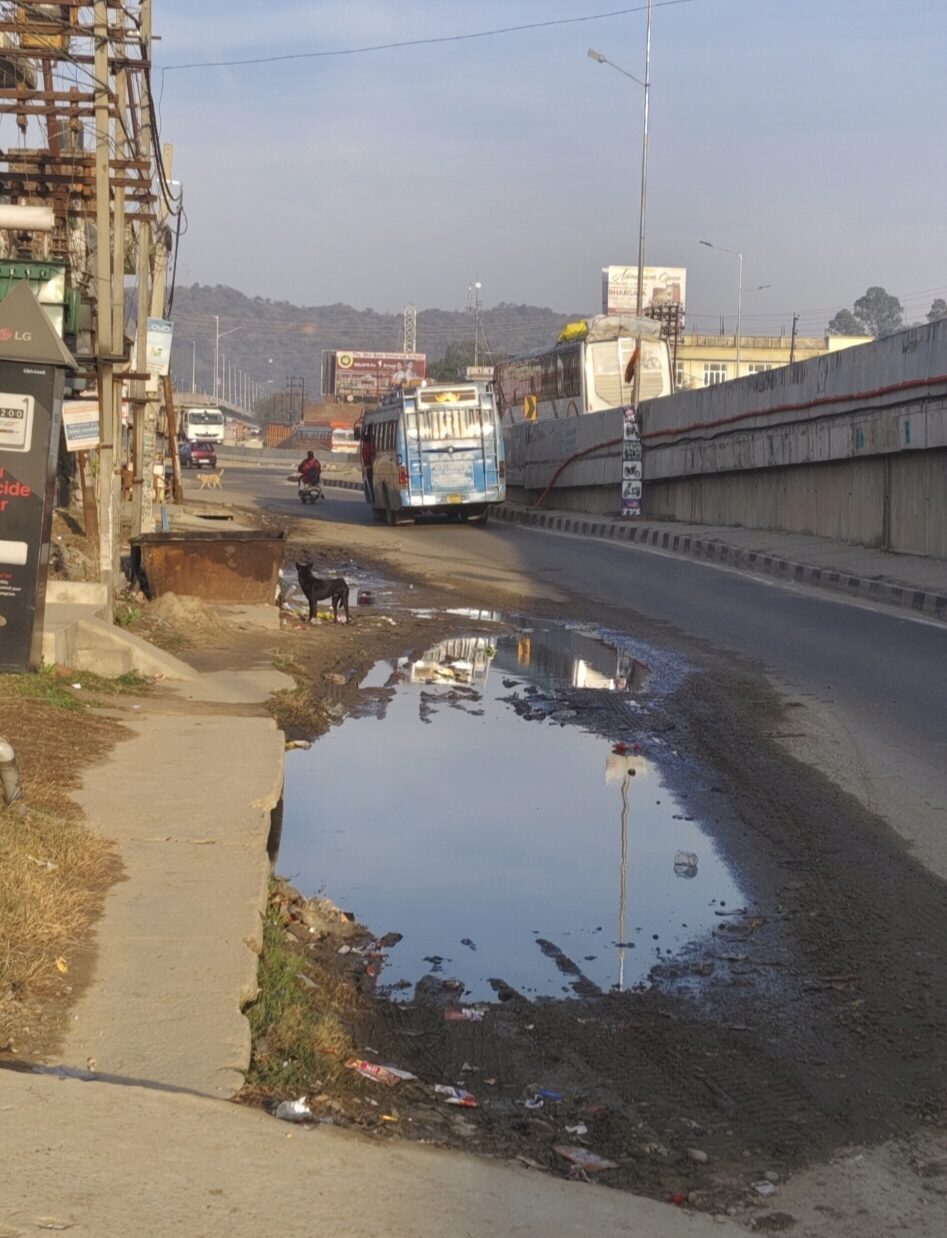 Commuters travelling from Jammu towards Samba face another thrilling experience near Bhargava College, where taking a turn becomes an exercise in precision driving due to the extremely limited space. The descending and ascending roads of the flyover also twist in ways that make drivers wonder whether they are on a national highway or participating in an unexpected driving test.