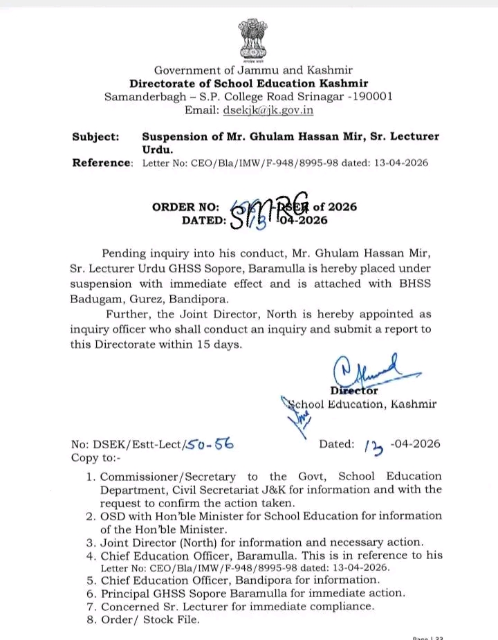 Meanwhile, further investigation into the case is underway & till that the above mentioned alleged accused is suspended by School Education Deptt.